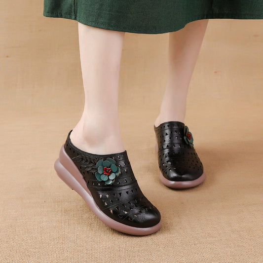 Zapatillas de cuero huecas con flores