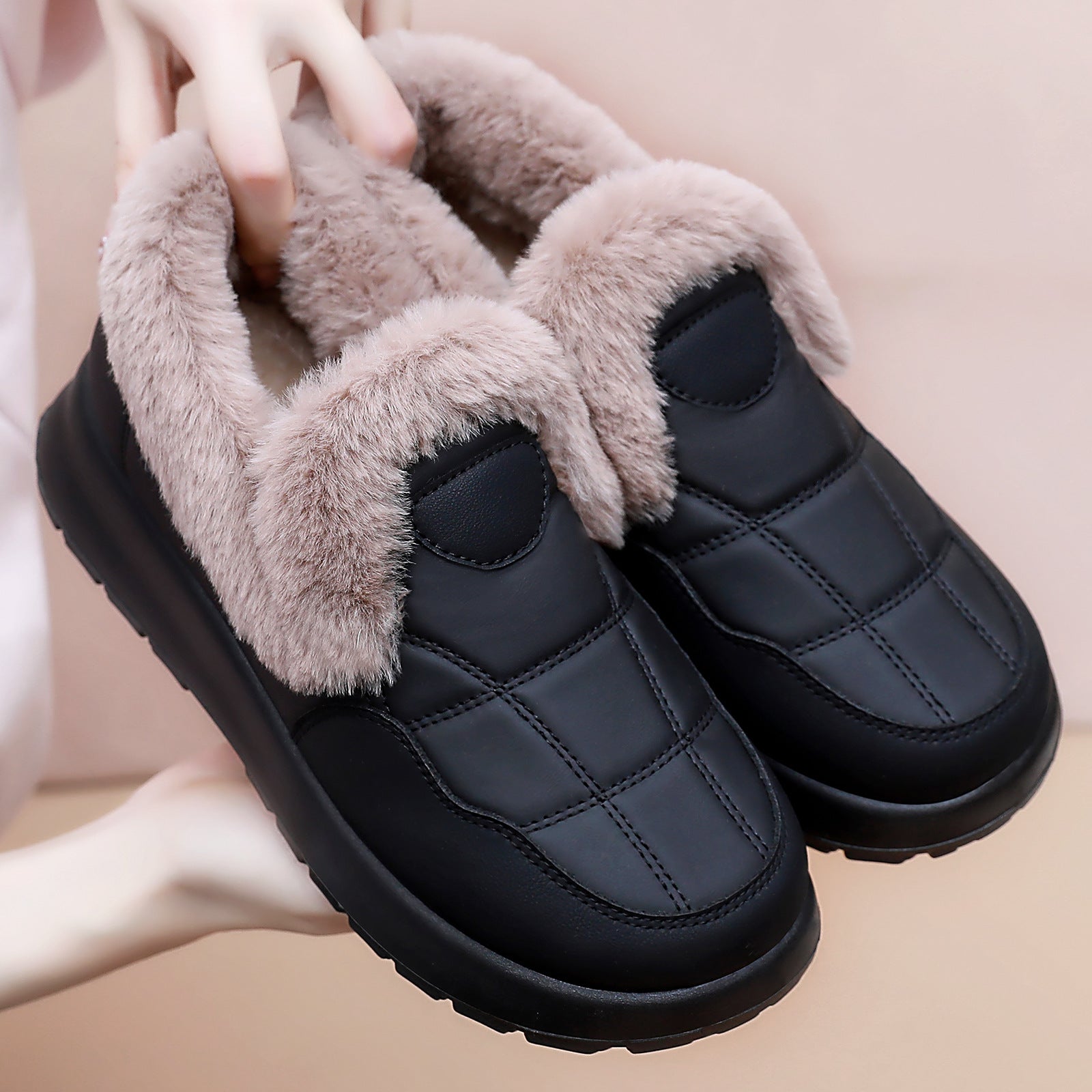 La calidez duradera se mantiene intacta. El diseño de bucle de piel de conejo agrega un toque de sofisticación, mientras que la plantilla de lana mantiene los pies cálidos y prácticos.