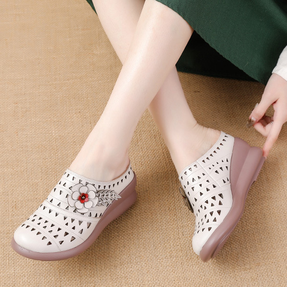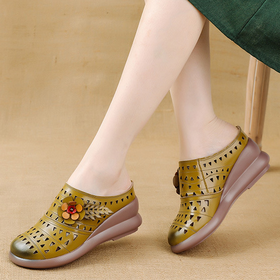 Zapatillas de cuero huecas con flores